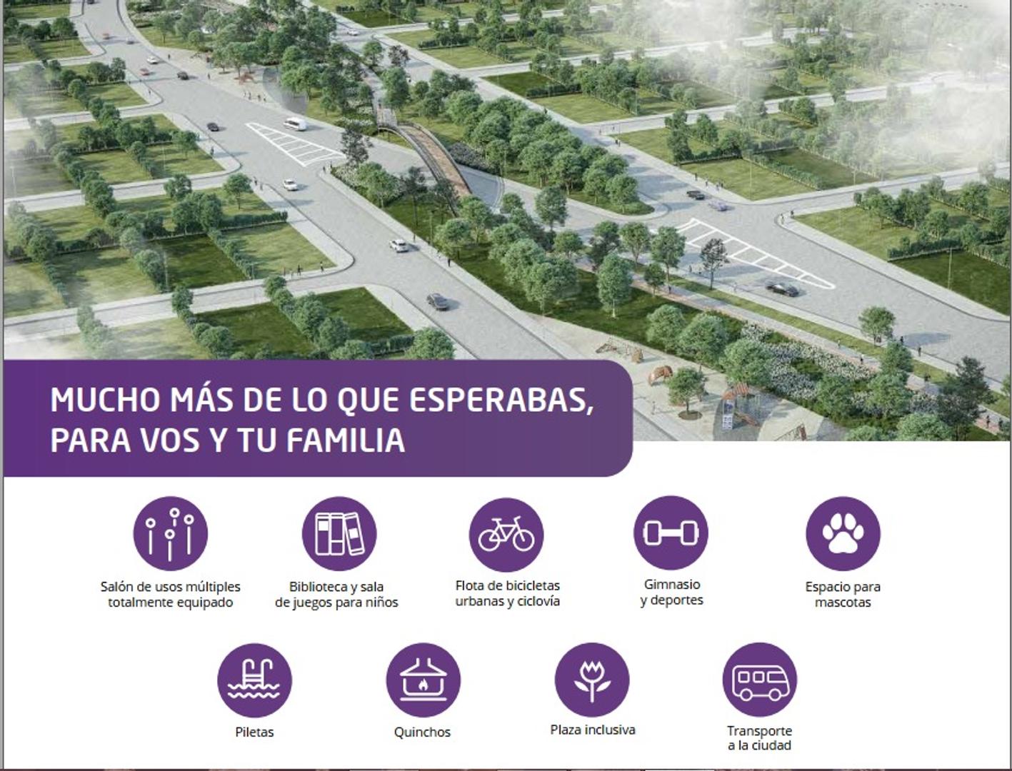 Excelente Barrio Cerrado que se está desarrollando sobre la Ruta 51 antes de llegar al Aeropuerto que estará finalizado en Junio de 2022. Lotes desde 600 m2 a 750 m2. Pavimento en todas las calles. Alumbrado público con tecnología Led . Tendido eléctrico de baja tensión subterráneo. Numerosos espacios verdes parquizados. Servicio de vigilancia, con control de acceso. Redes de gas natural, agua y cloacas. Tendido de tritubo para red de datos para Internet, TV y Telefonía. Salón de usos múltiples, Bibliotec y sala de Juegos para niños. Flota de bicicletas urbanas. Gimnasio y deportes, Quincho, pileta de natación. Precio desde u$s 38.000.-